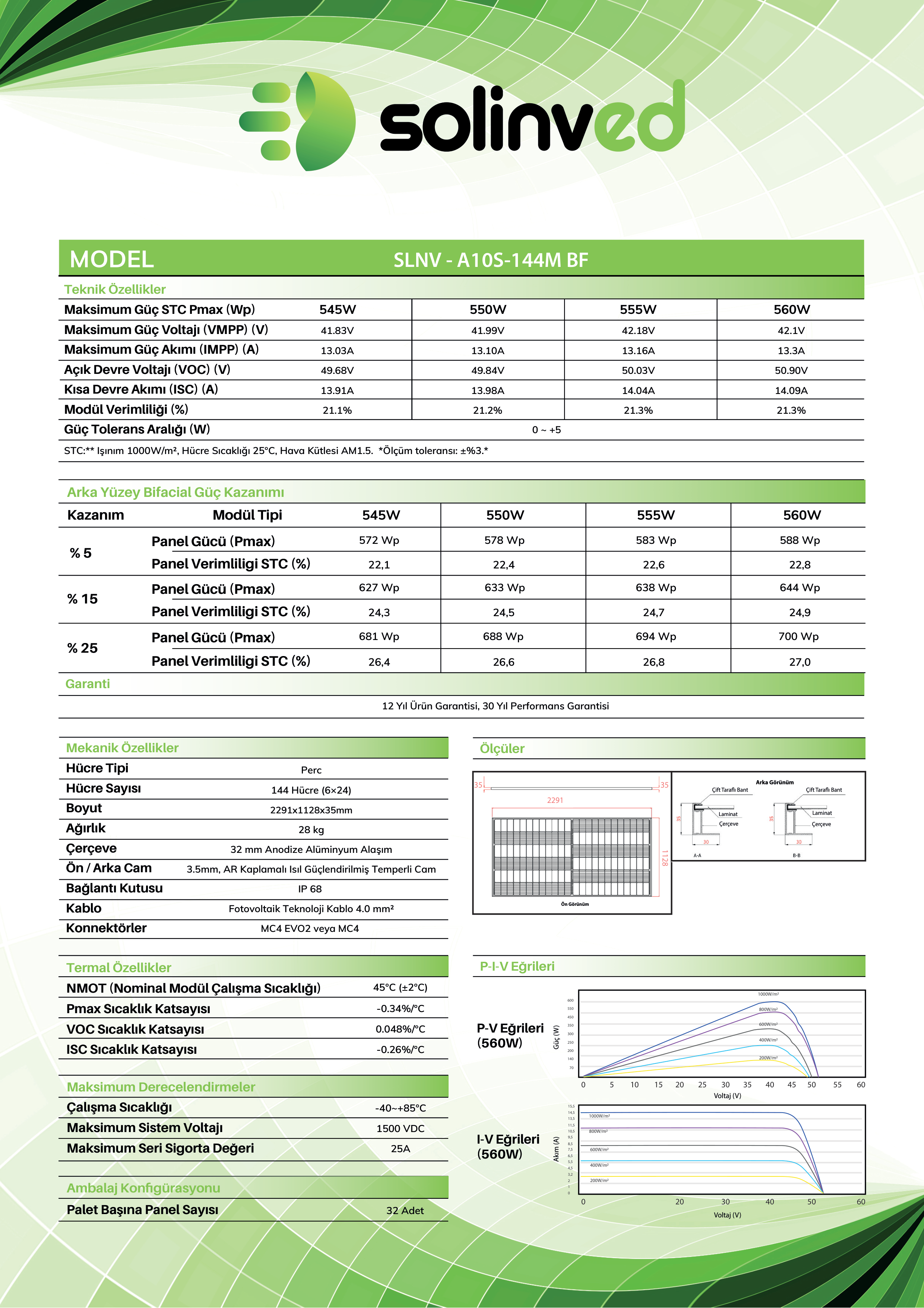 Solinved 550 Watt Bifacial Çift Yönlü Half Cut Güneş Paneli